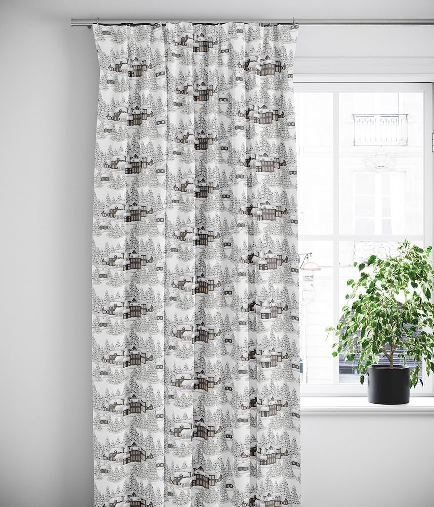 Beskrivning av Vinterbyn grå julgardiner
