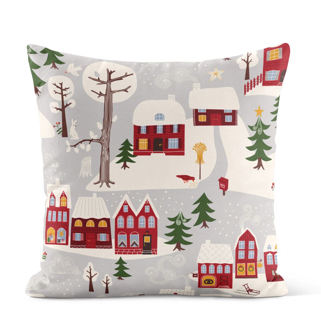 Vintertid ljusgrå kuddfodral fångar den skandinaviska vinterns charm med ett vackert motiv som visar snötäckta hus, gröna granar och lekfulla vinterdetaljer på en stilfull ljusgrå bakgrund. Detta kuddfodral är perfekt för att skapa en ombonad och harmonisk atmosfär i ditt hem under vintern. Designen med dess fina detaljer blir ett underbart inslag i soffan, fåtöljen eller sängen, och ger rummet en känsla av nordisk vintermagi. Kombinera med andra kuddfodral i vinterkollektionen för att skapa en komplett och inbjudande vinterscen.