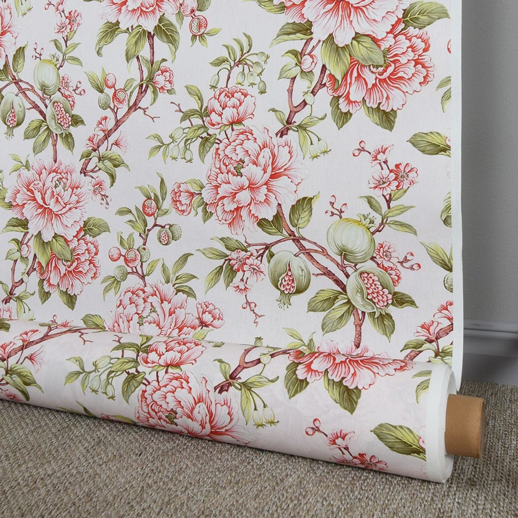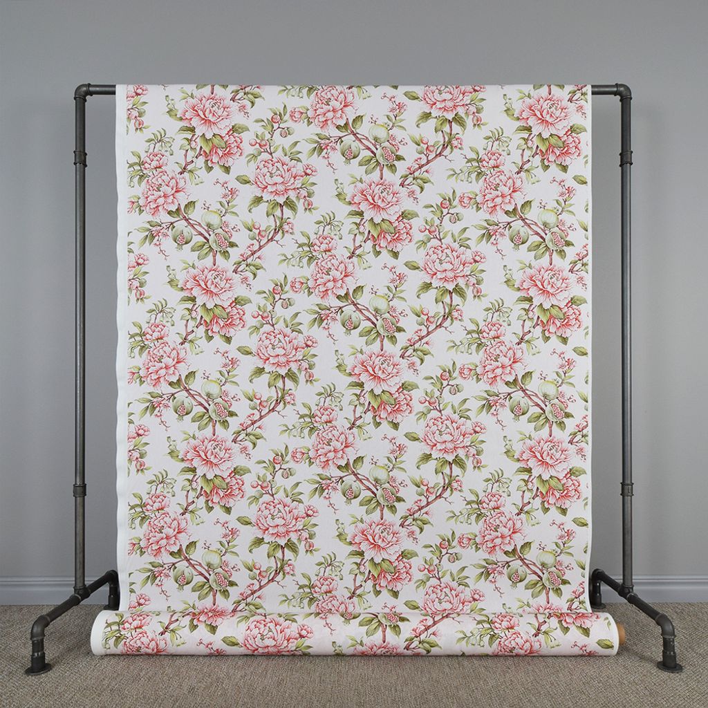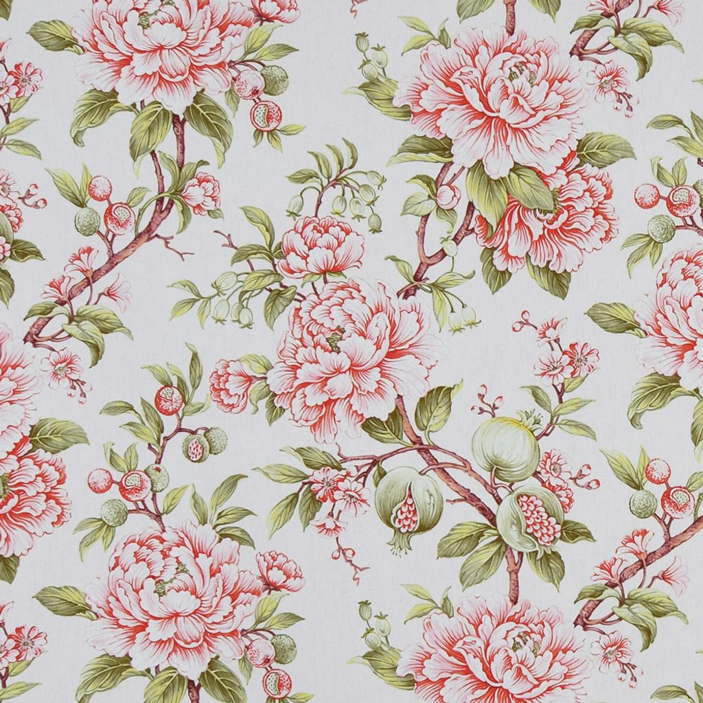 Beskrivning av Vivienne blommigt gardintyg med pioner och granatäpplen