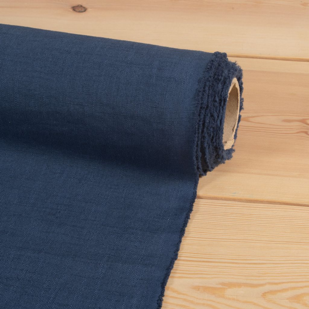 Tvättat lin och bomulls tyg i blått som passar både till gardiner, hemtextil och kläder. Oeko-tex