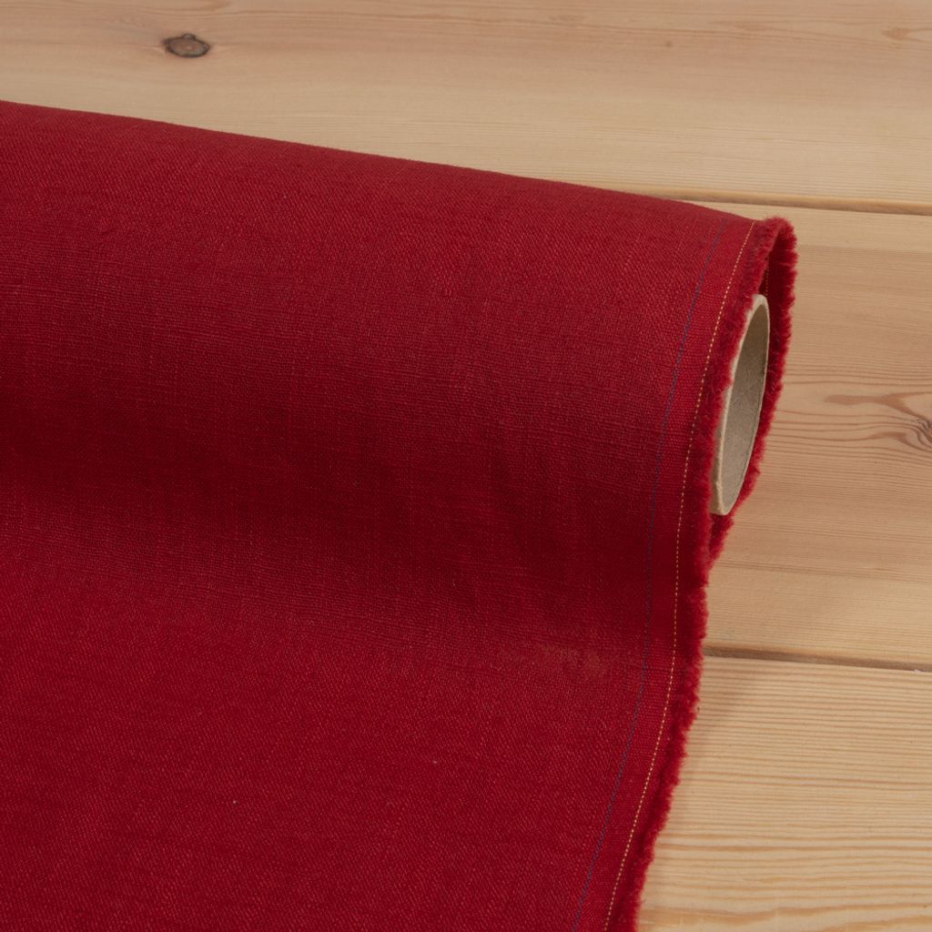 Tvättat lin och bomulls tyg i rött som passar både till gardiner, hemtextil och kläder. OEKO-tex