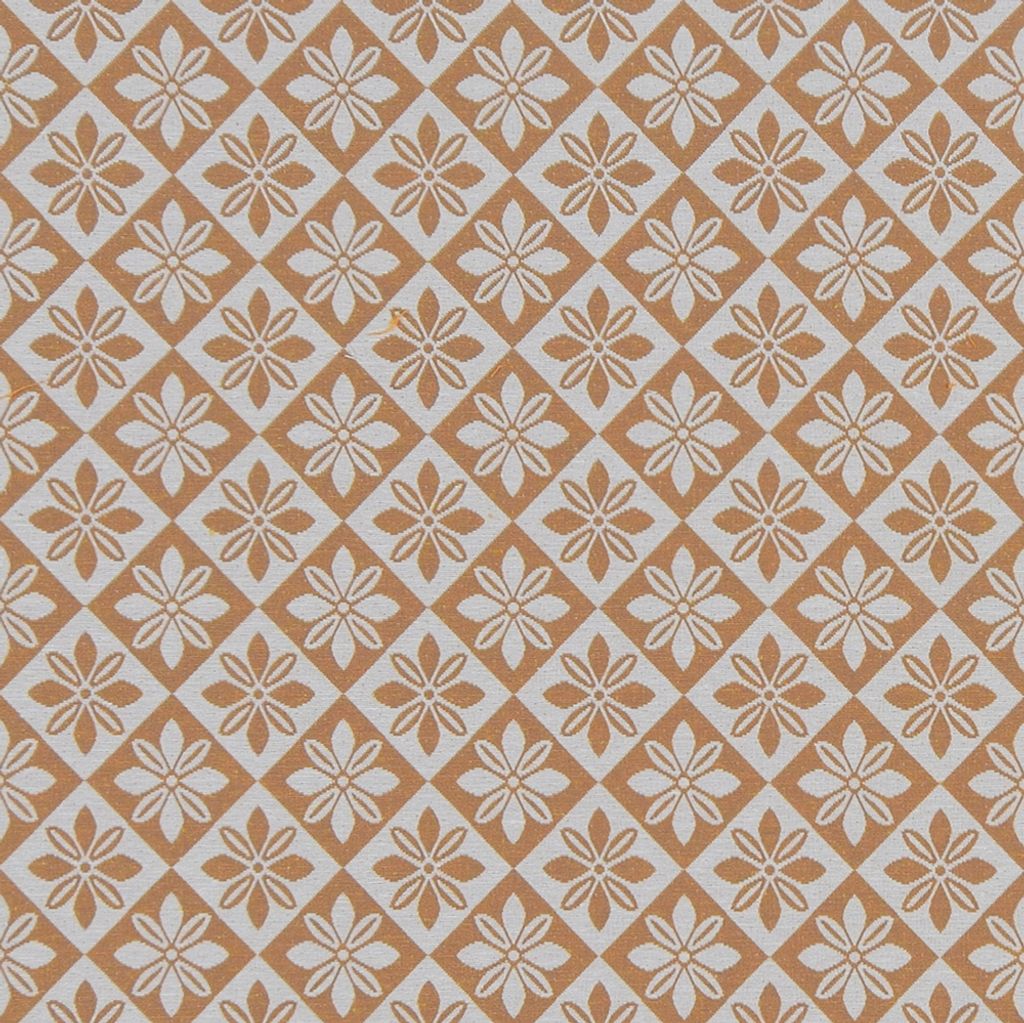 Bolstertyg på metervara. Gult bolstertyg med gammeldags stjärnmönster.