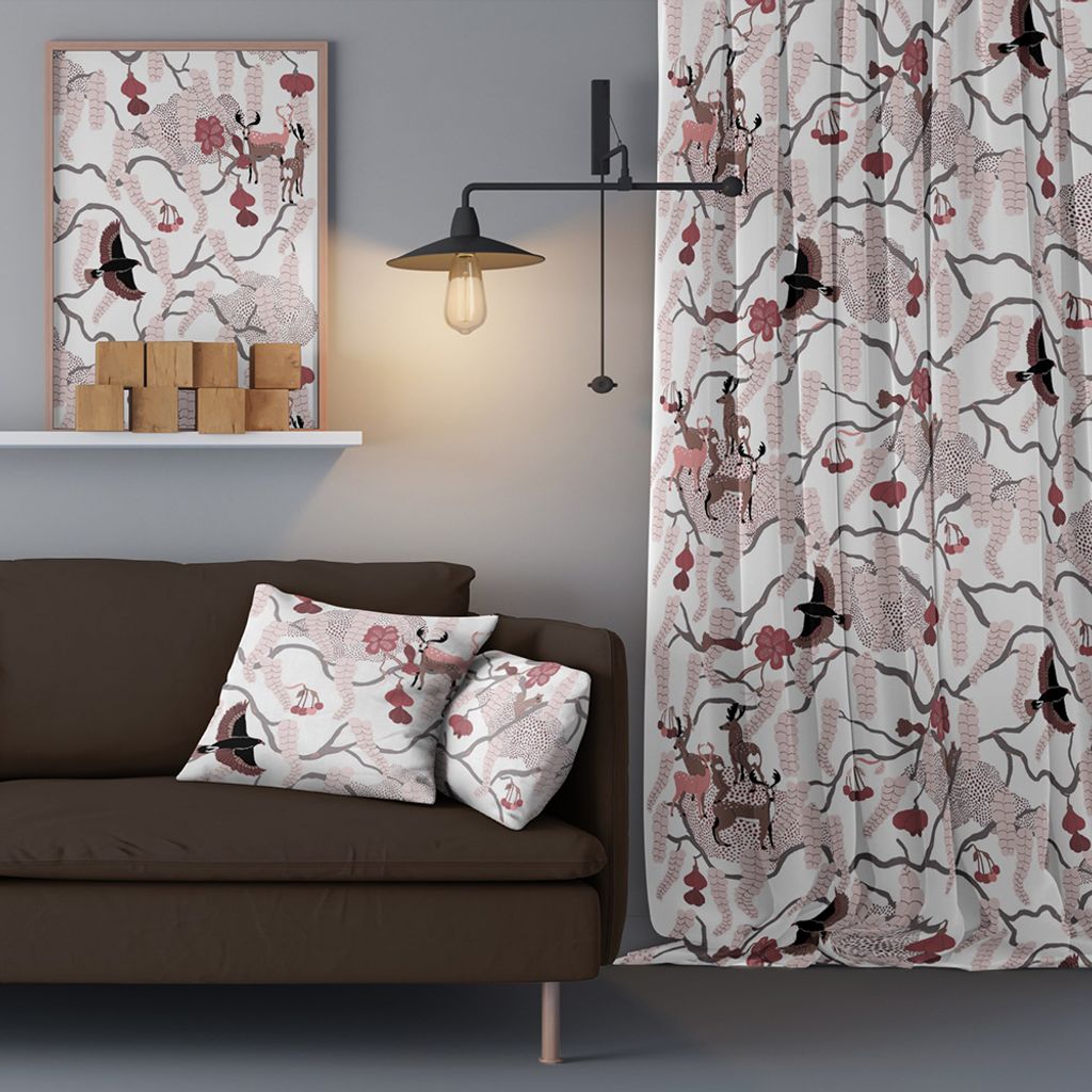 Beskrivning av Yggdrasil rosa tyg