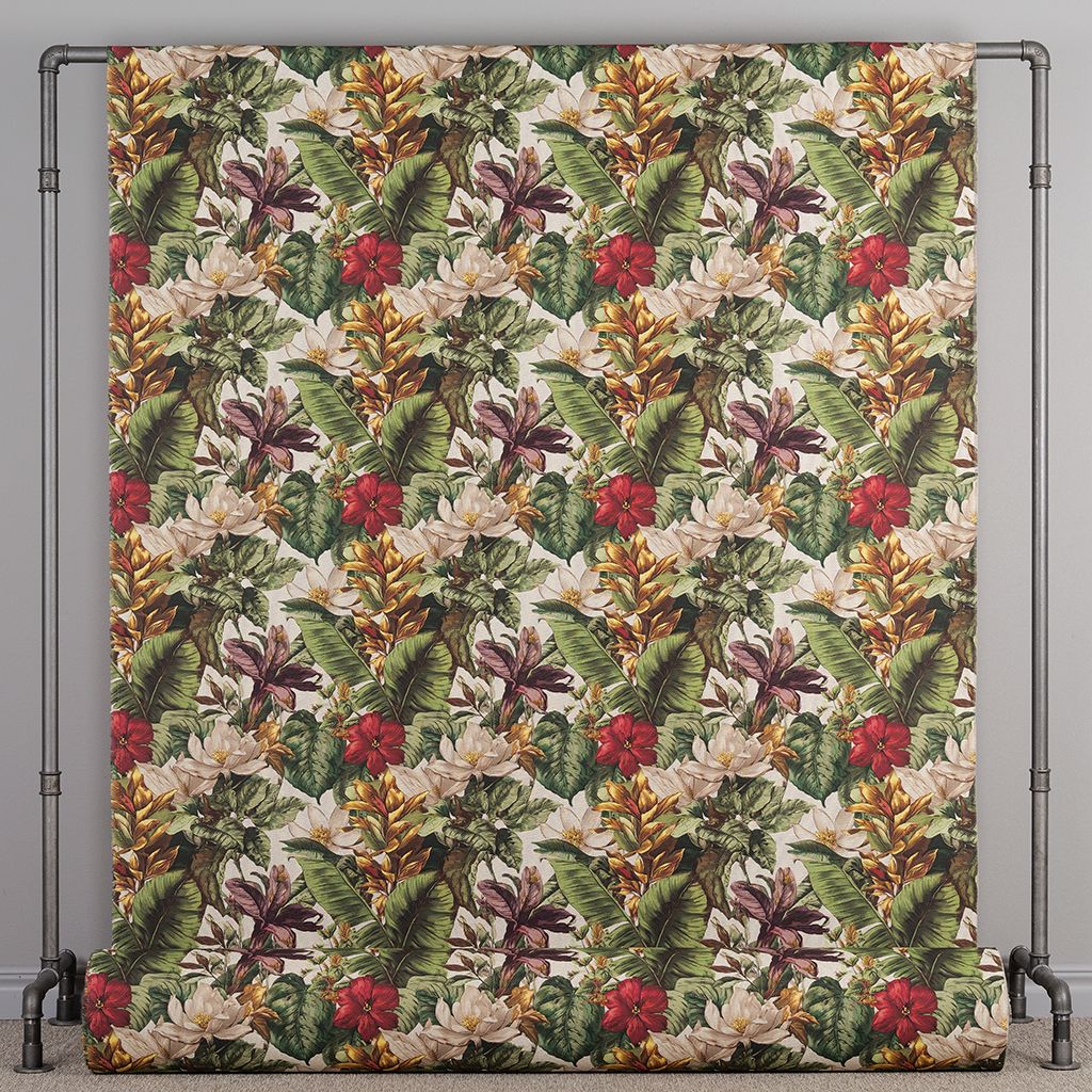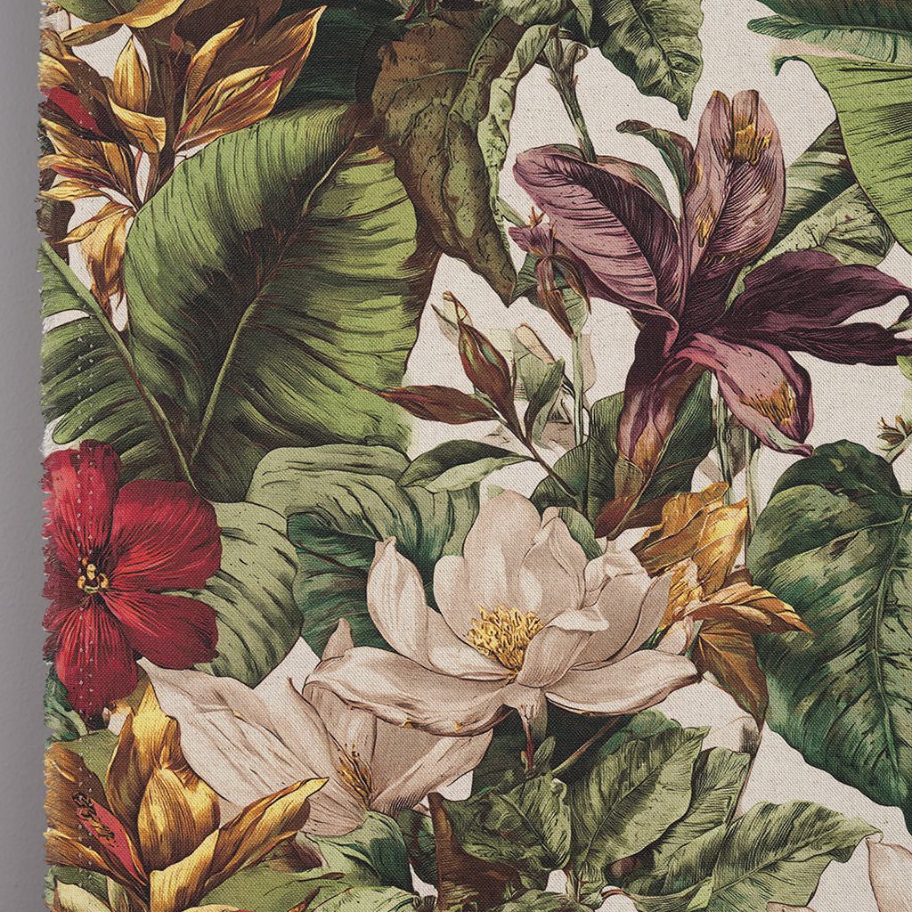 Yucatan är ett karaktärsfullt tyg med ett rikt och levande uttryck som för tankarna till frodig natur och varmare klimat. Det digitaltryckta motivet ger en imponerande detaljrikedom där varje blad och form framträder tydligt och skapar djup i designen.